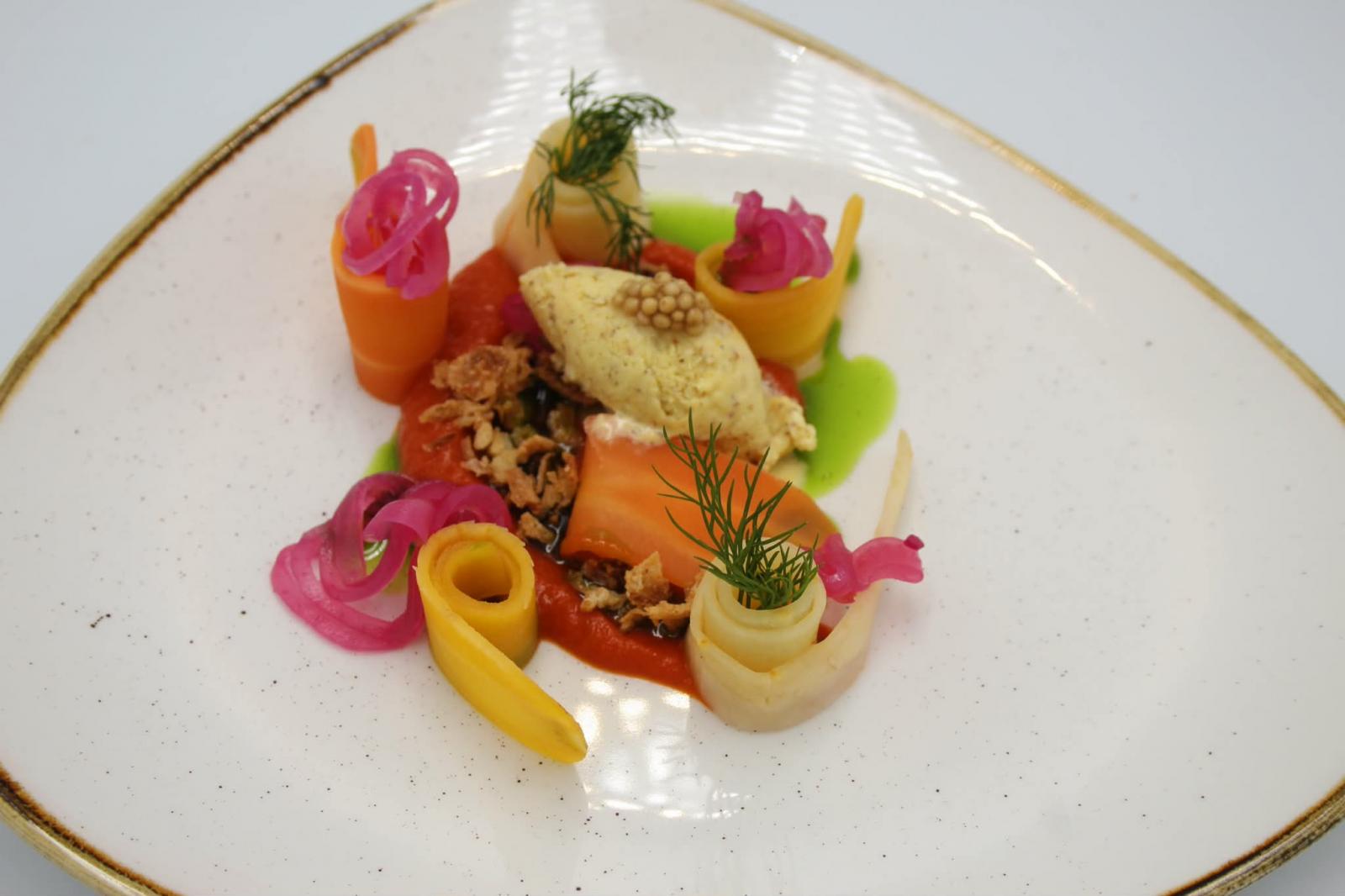 Degustacinio vakaro metu Algirdas Matačiūnas sąmoningai pasirinko patiekalus, kurie atspindi lietuviškos virtuvės esmę, tačiau buvo pateikti šiuolaikiškai ir subtiliai, pritaikant juos tarptautinei publikai. Svečiai buvo pasitikti itin simboliškai, juoda lietuviška duona su spanguolių džemu ir iš Lietuvos atsivežtu rūkytu kumpiu tapo pirmuoju, aiškiu kultūriniu ženklu, leidusiu pajusti šalies gastronominį identitetą dar prieš prasidedant vakarienei.