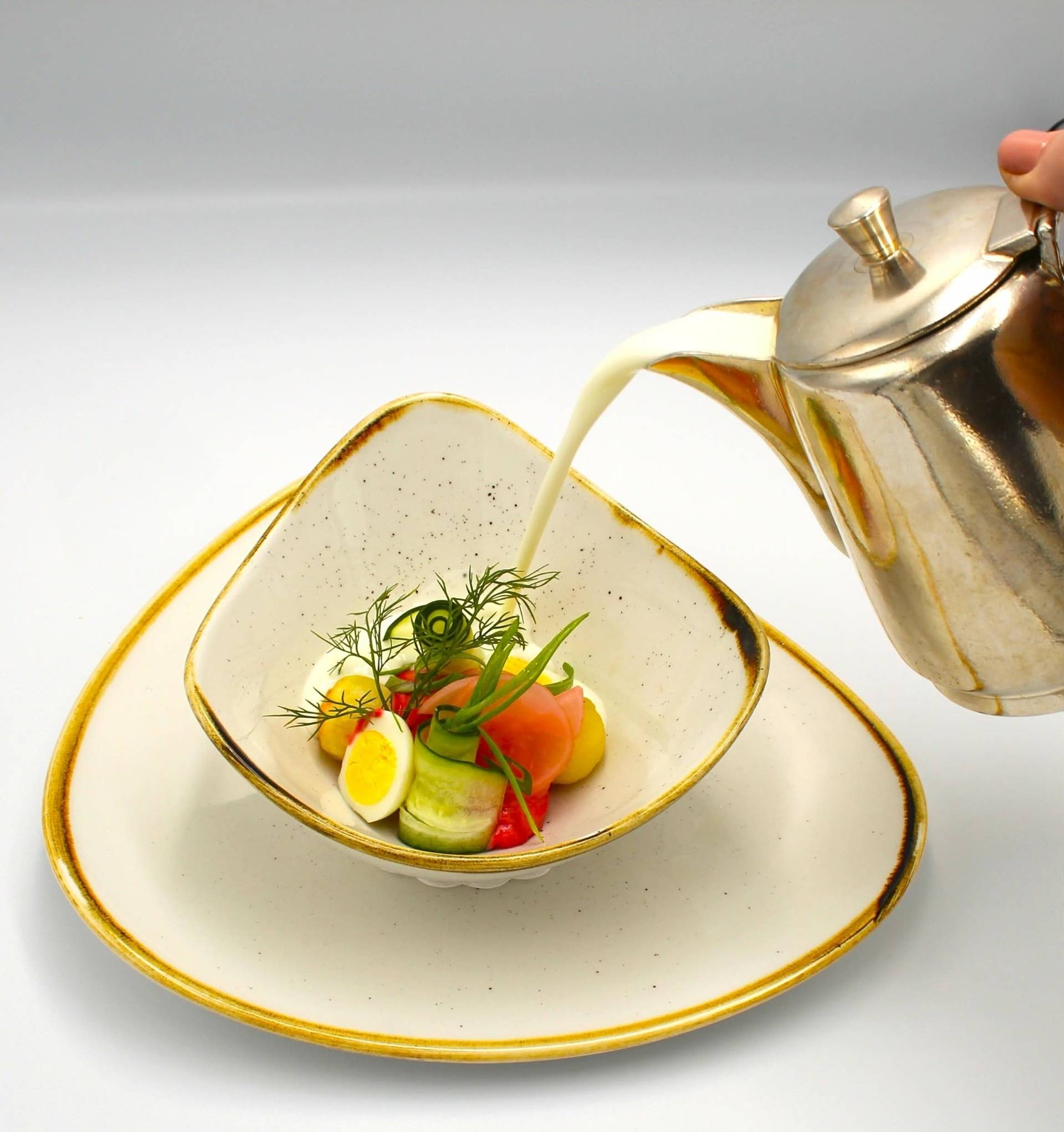 Toliau sekė bene atpažįstamiausias lietuviškas patiekalas – šaltibarščiai. Naudojant visus klasikinius ingredientus, patiekalas buvo išpildytas estetiškai ir preciziškai, išlaikant autentišką skonį, tačiau suteikiant jam modernios elegancijos. Tradiciniai balandėliai taip pat