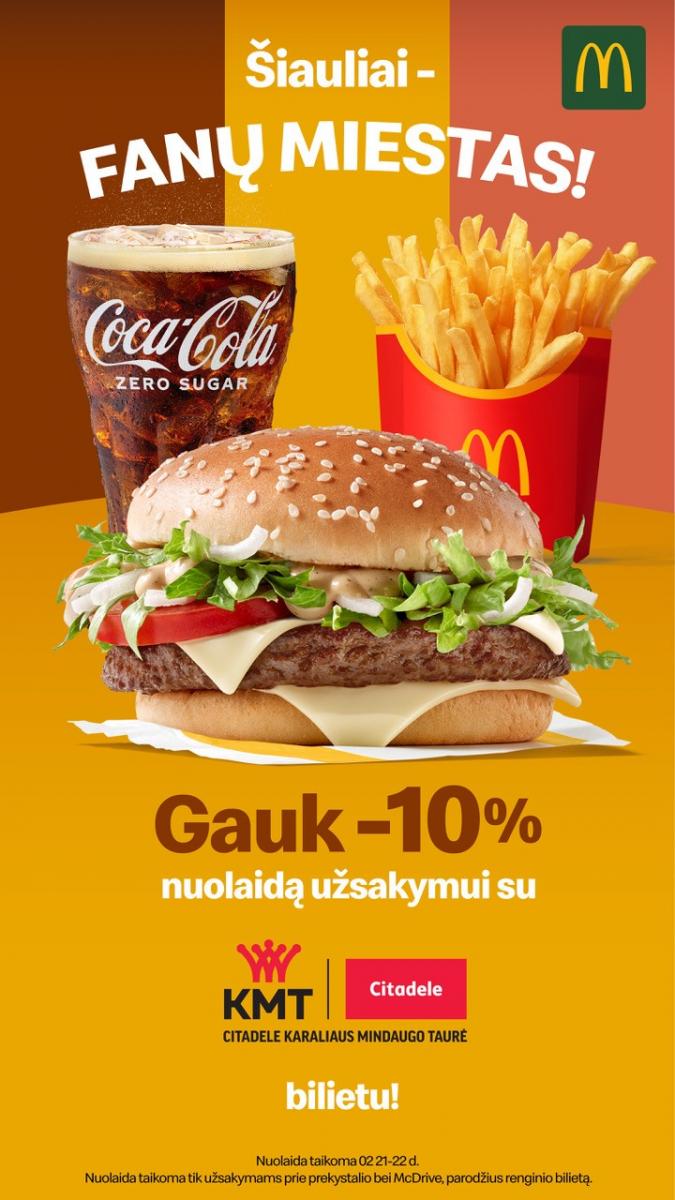 Nuolaida taikoma tik užsakymams prie prekystalio ir „McDrive“, pateikus renginio bilietą.