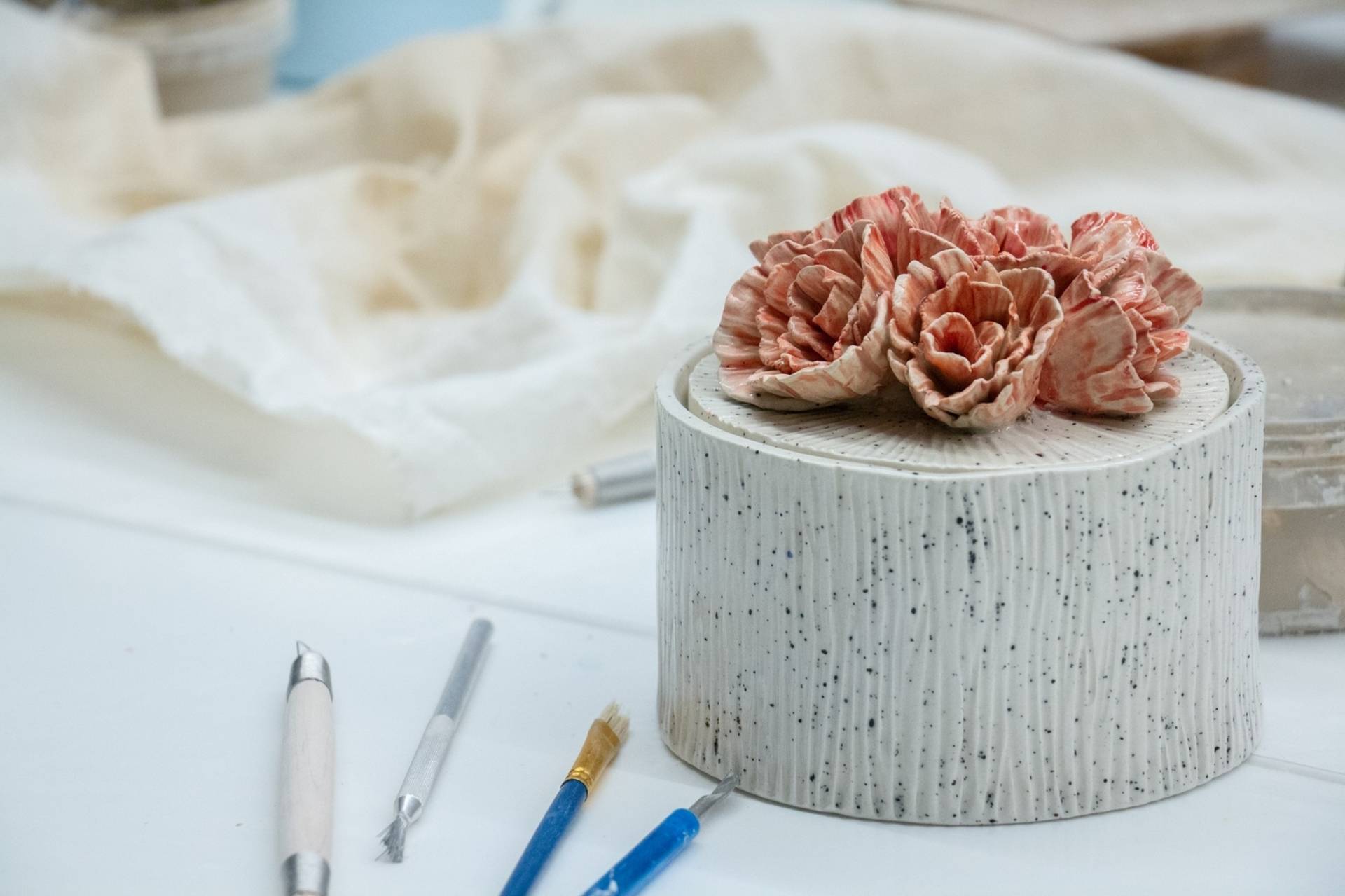 Edukacinio užsiėmimo metu bus sukuriamas keraminis indelis su dangteliu, dekoruotas įvairiomis, dekoratyvinėmis detalėmis – gėlių žiedais, uogomis, lapeliais. Unikaliam darbui pagaminti bus naudojamas baltas molis, kuris suteiks gaminiui prabangos, o auksavimo akcentai suteiks ypatingo spindesio ir šventiškos elegancijos. Rankų darbo vienetinis gaminys bus ne tik funkcionalus daiktas, bet ir išskirtinė namų dekoracija.