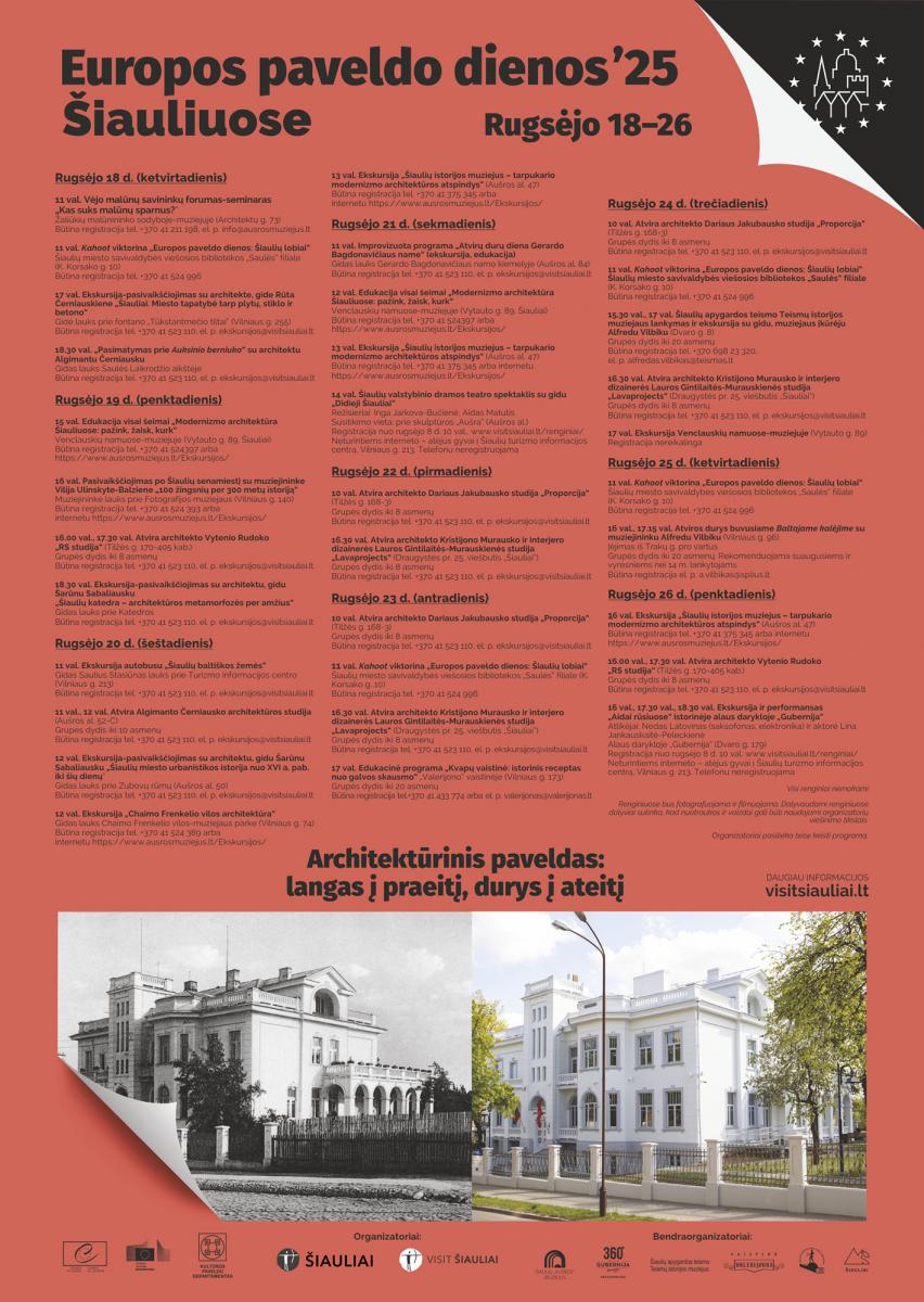 13 val. Ekskursija „Šiaulių istorijos muziejus - tarpukario modernizmo architektūros atspindys“ (Aušros al. 47). Būtina registracija tel. +370 41 375 345