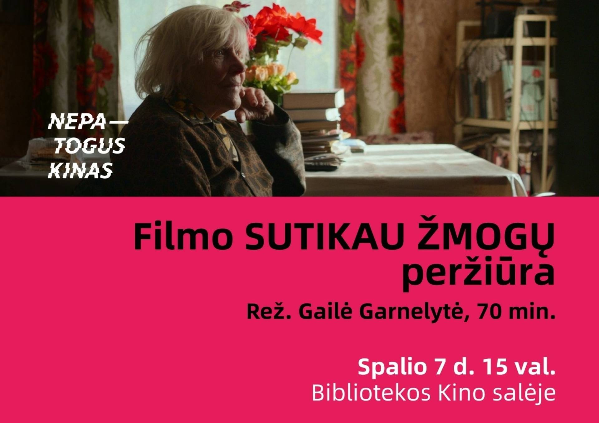 Spalio 7 d. 15:00 val. Šiaulių apskrities Povilo Višinskio viešosios bibliotekos Kino salėje vyks filmo „Sutikau žmogų“ peržiūra. Filmo trukmė – 70 min.