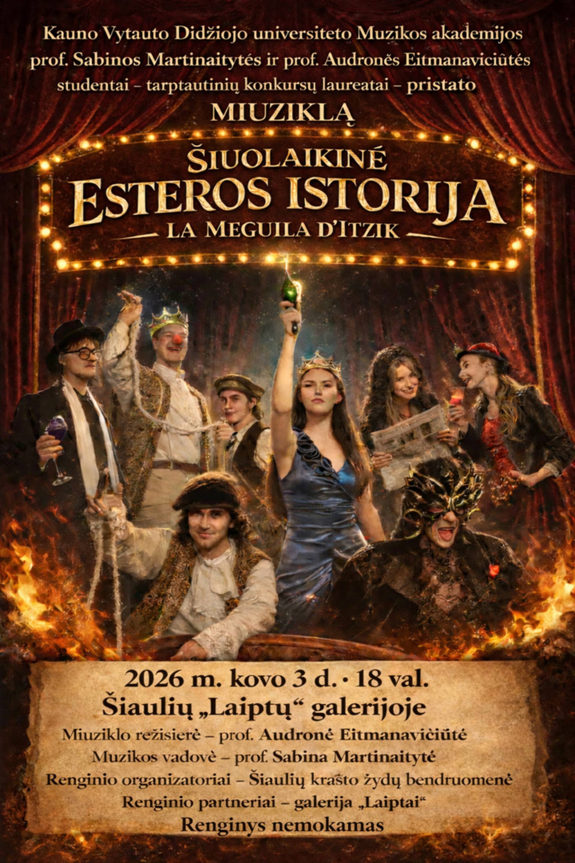 Šiaulių krašto žydų bendruomenė maloniai kviečia į miuziklą „Šiuolaikinė Esteros istorija“ („La Meguila d'Itzik“), kuris vyks kovo 3 d. 18.00 val. Šiaulių kultūros centro galerijoje „Laiptai“.
