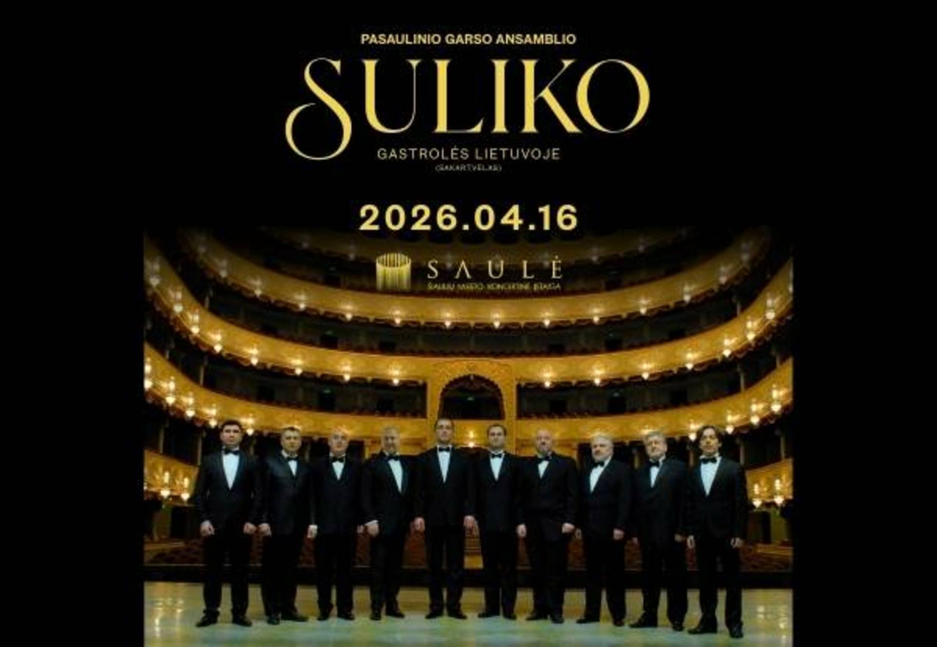 Unikalūs balsai, dainuojančios širdys ir specialiai ruošiama programa, kurioje atsispindės kartvelų muzikinė istorija nuo archajinių kūrinių iki šiuolaikinių operų ir miesto romansų – visa tai pirmieji išgirs Lietuvos klausytojai. Tbilisio operos ir baleto teatro pagrindiniai solistai – pasaulinio garso ansamblis „Suliko” sugrįžta pilna sudėtimi ir leidžiasi į gastroles po Baltijos šalis, o turą pabaigs Lenkijoje.