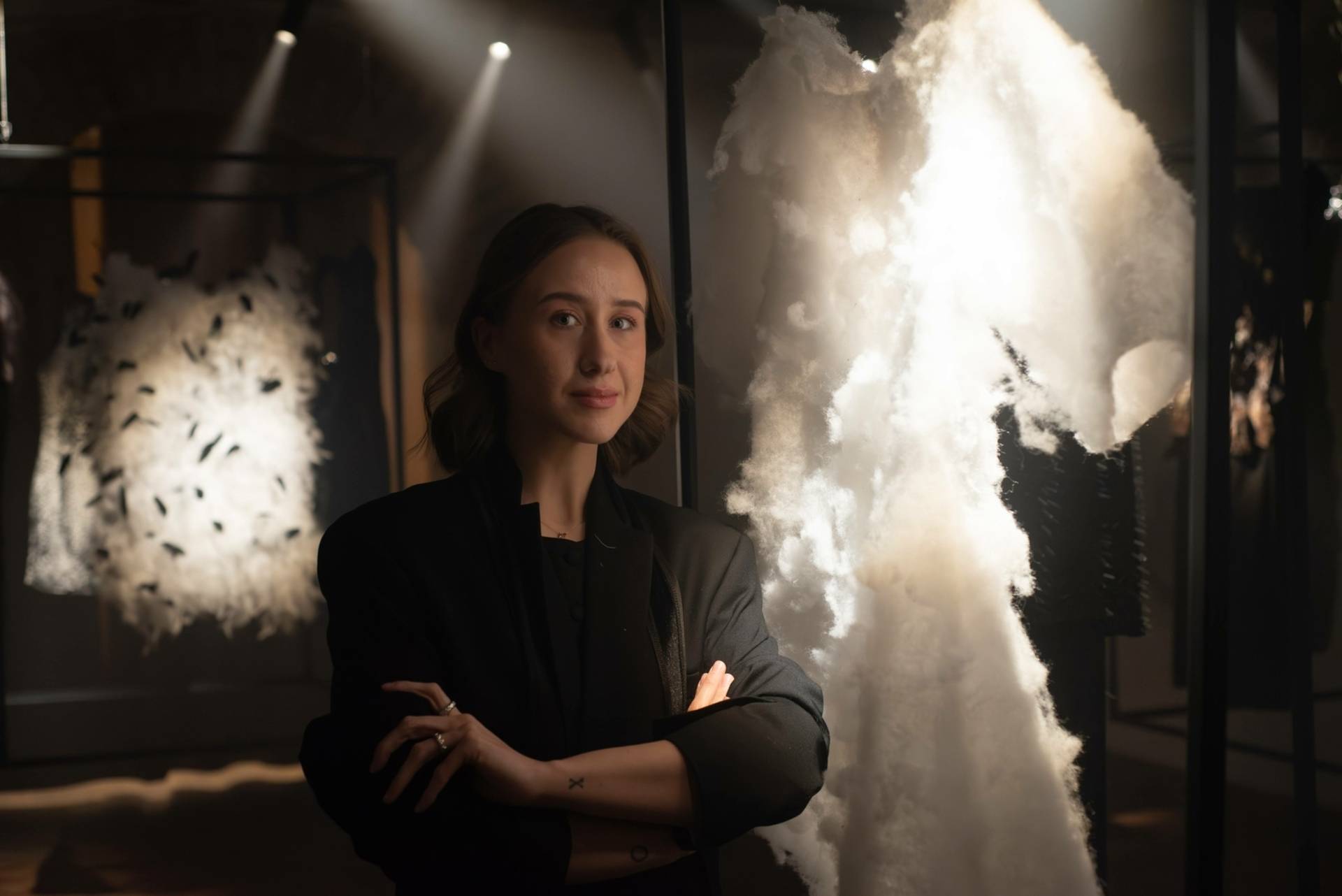 Parodoje pristatomi drabužiai veikia kaip jutiminiai impulsai: jų paviršiai kviečia liesti, kai kurios medžiagos reaguoja į judesį, šnabžda ar traška, kitos sugeria garsą ir kuria tylą. Kvapai persipina su audiniais ir erdve, įtraukdami atmintį ir emociją. Tokiu būdu mada čia atsiskleidžia kaip procesas – ryšys tarp kūno, medžiagos ir pojūčių.
