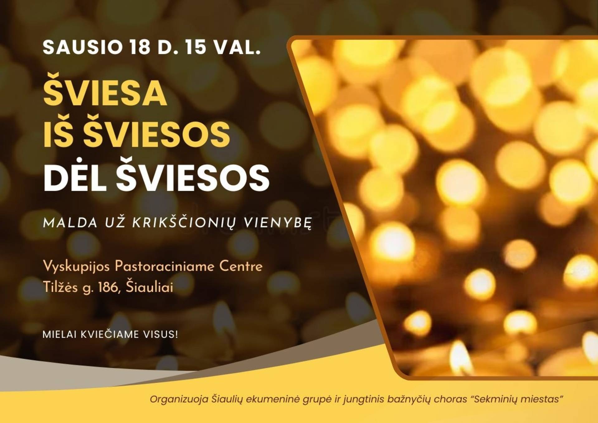 Kviečiame miesto bendruomenę, įvairių krikščioniškų bažnyčių tikinčiuosius ir visus geros valios žmones į Maldą už krikščionių vienybę.