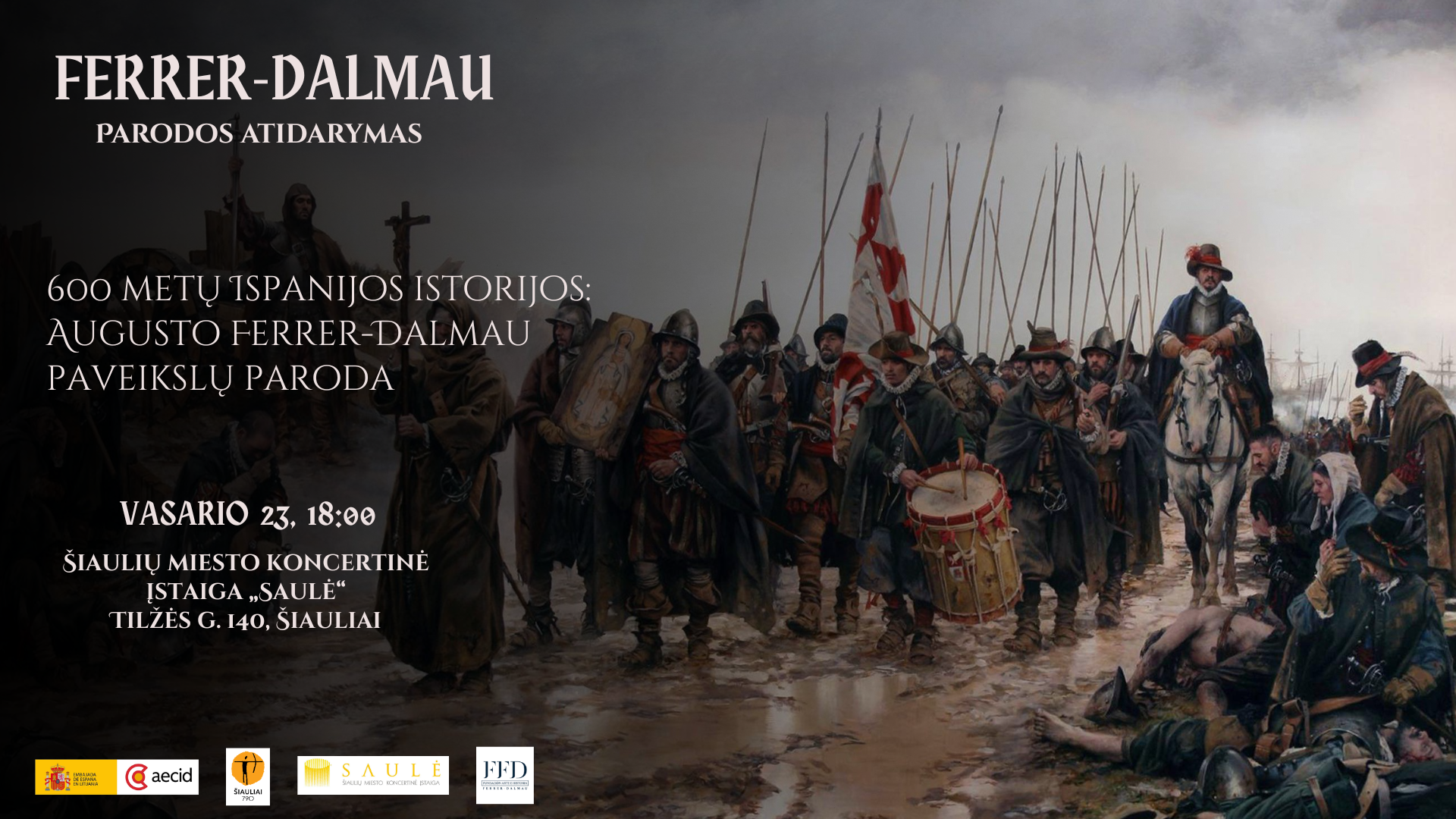 Vasario 23 d. 18 val. koncertų salės „Saulė“ „Vitražų“ salėje – FERRER-DALMAU parodos atidarymas. 600 metų Ispanijos istorijos: AUGUSTO FERRER-DALMAU paveikslų paroda.